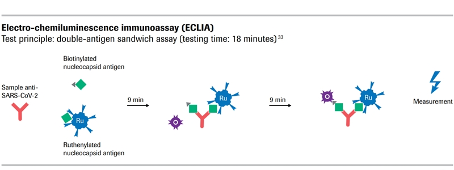 Testul Elecsys Anti-SARS-CoV-2 identifică prezența anticorpilor de tip IgM și IgG, direcționați contra nucleocapidei virale. Sensibilitatea testului a fost verificată cu probe prelevate de la pacienți cu COVID-19, confirmat prin testul diagnostic PCR. La 14 zile de la confirmarea PCR, sensibilitatea testului este de 100% (toate probele pozitive au fost identificate ca atare). În plus, printre pacienții testați ulterior, vindecați de COVID-19 (test PCR negativ), testul Elecsys Anti-SARS-CoV-2 continuă să identifice anticorpi (ceea ce ar sugera o seroconversie durabilă).